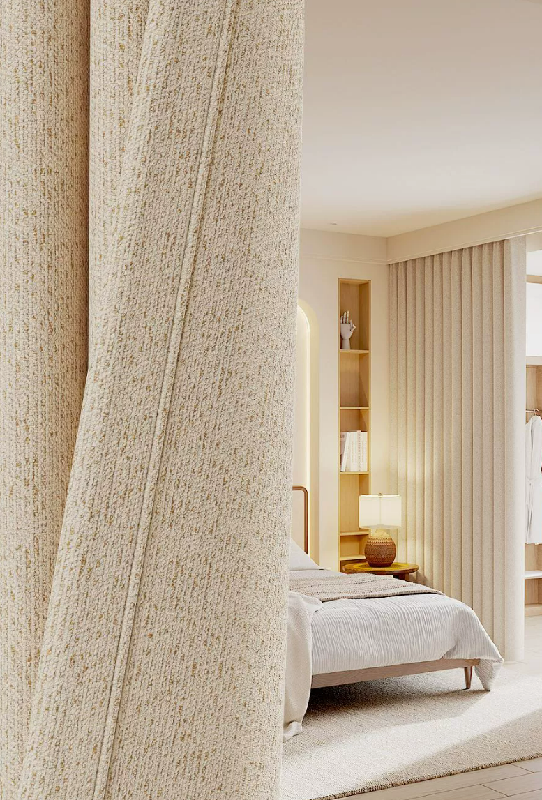 Rideau occultant beige chambre en tissu chenille épais double face
