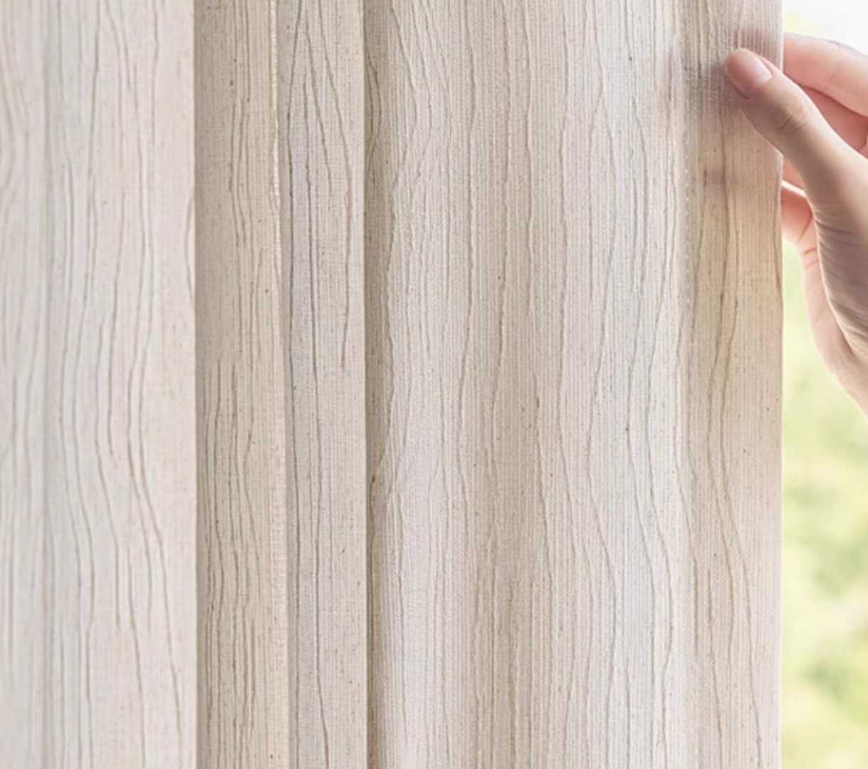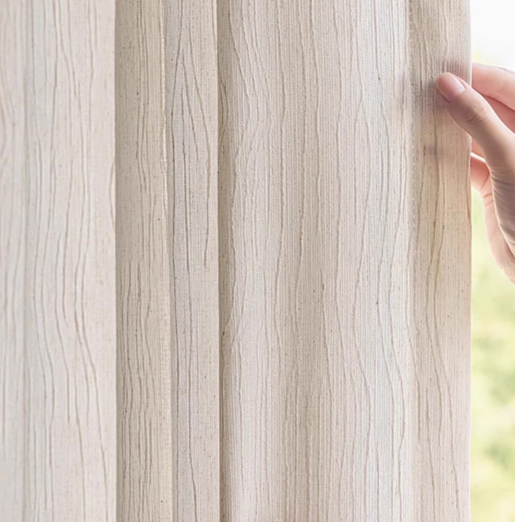 Voilage blanc ivoire texture vagues effet lin naturel
