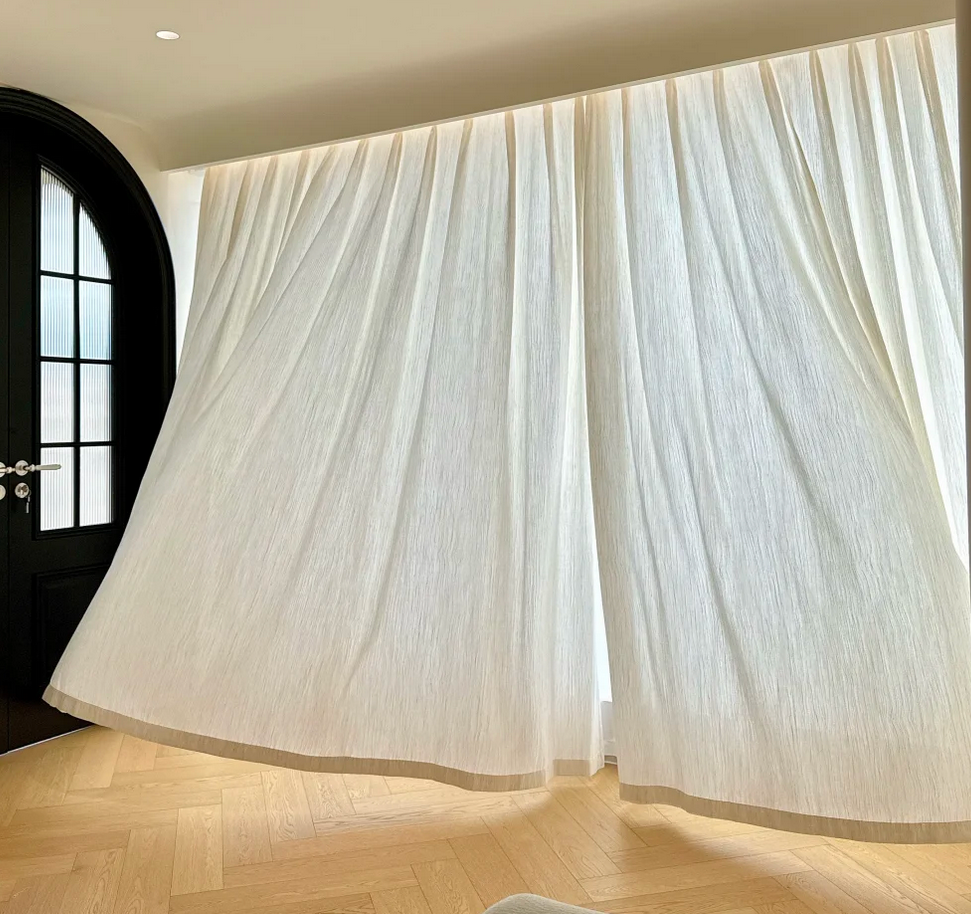 Laissez la lumière naturelle danser dans votre intérieur avec ce voilage blanc ivoire à texture ondulée effet lin, un tissu ultra léger et fluide qui se soulève au moindre souffle d'air pour créer une atmosphère sereine, poétique et lumineuse dans tous vos espaces de vie