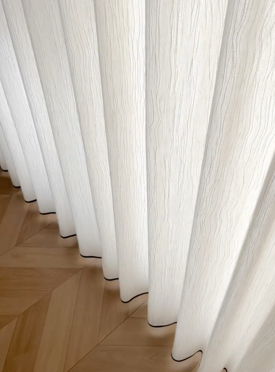 Voilage blanc ivoire texture vagues effet lin naturel sur Mesure
